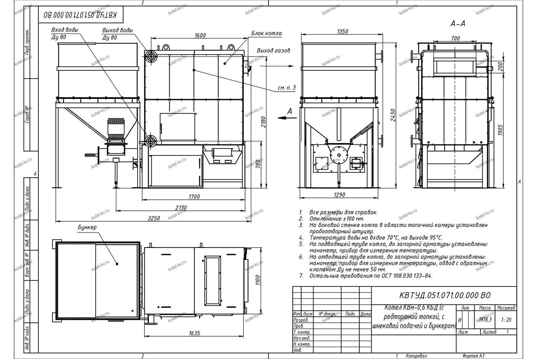 Угольный котел 0.6 МВт с автоматической подачей конструктивно состоит из следующих блоков: